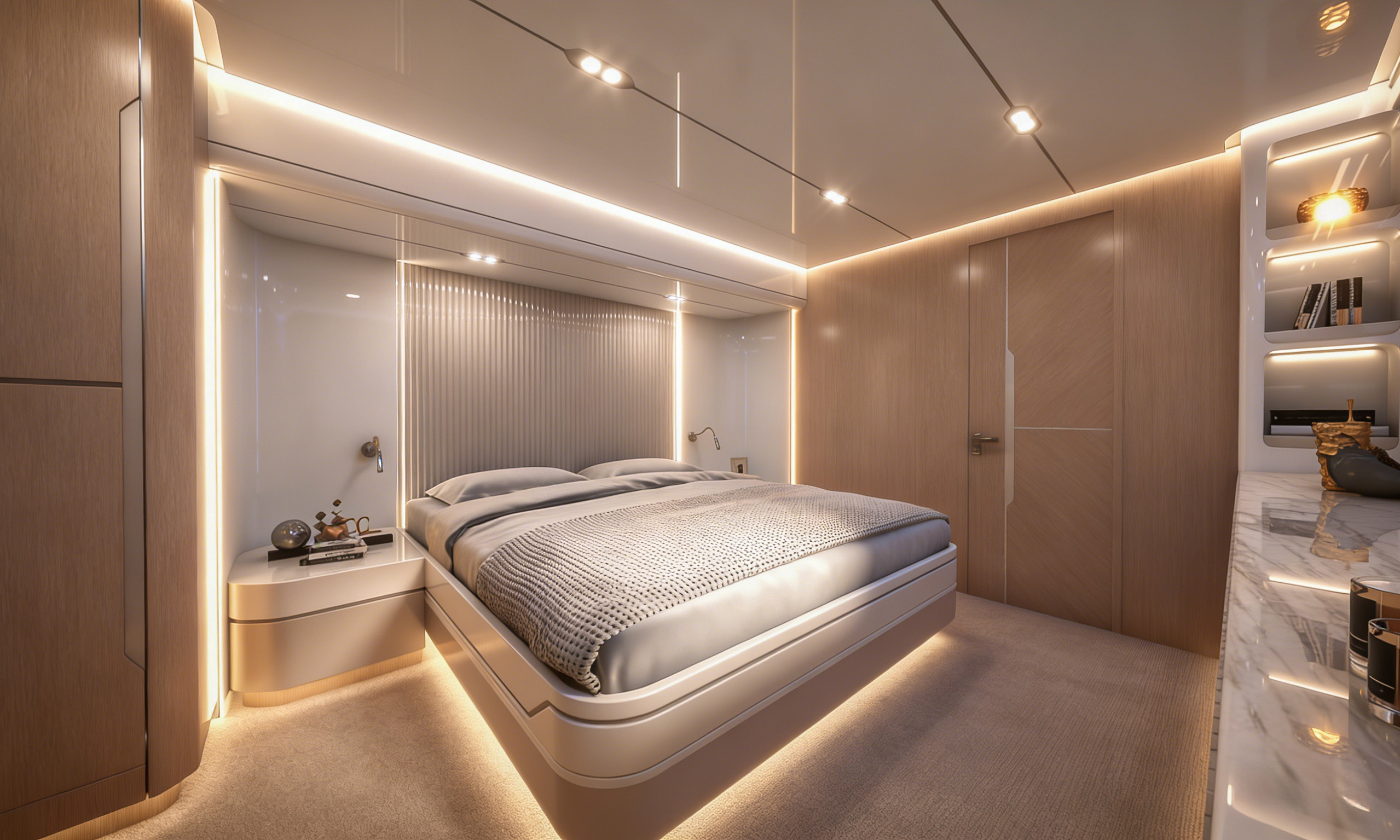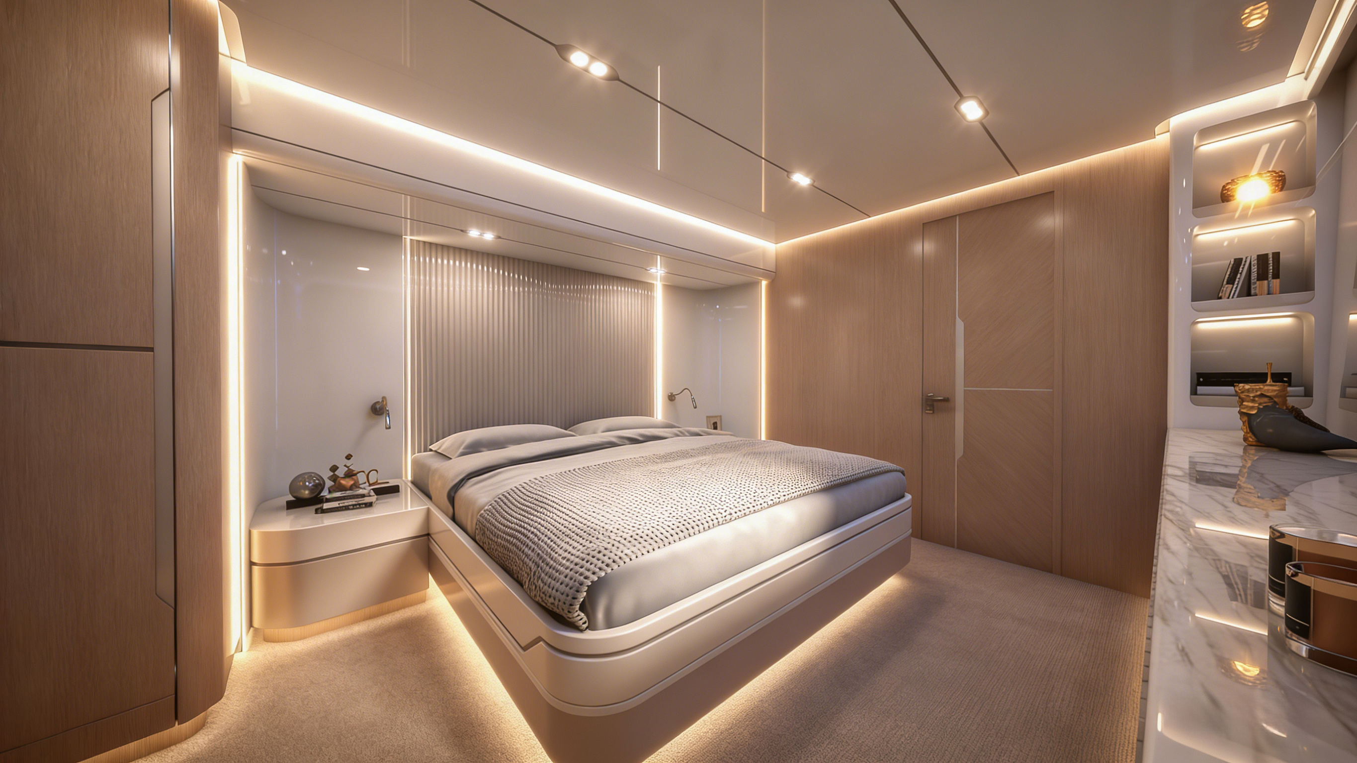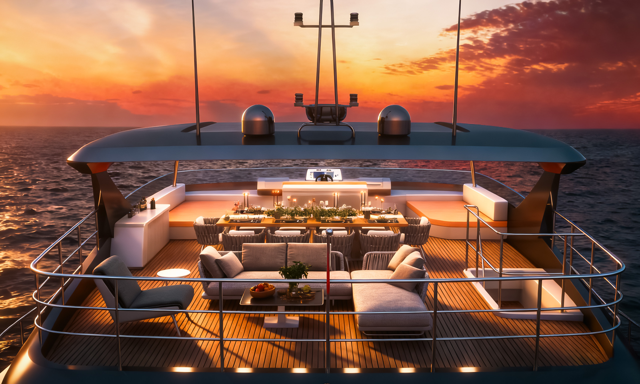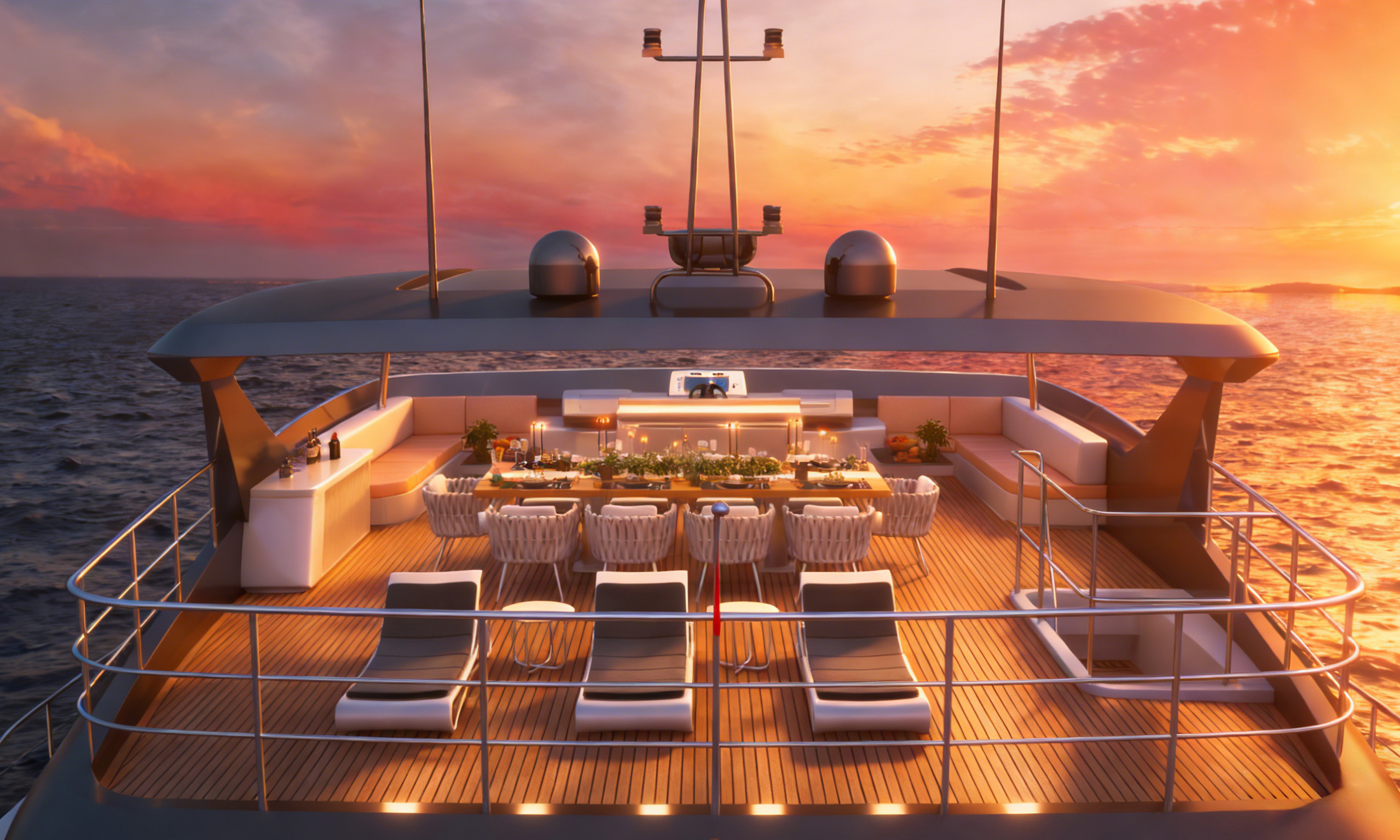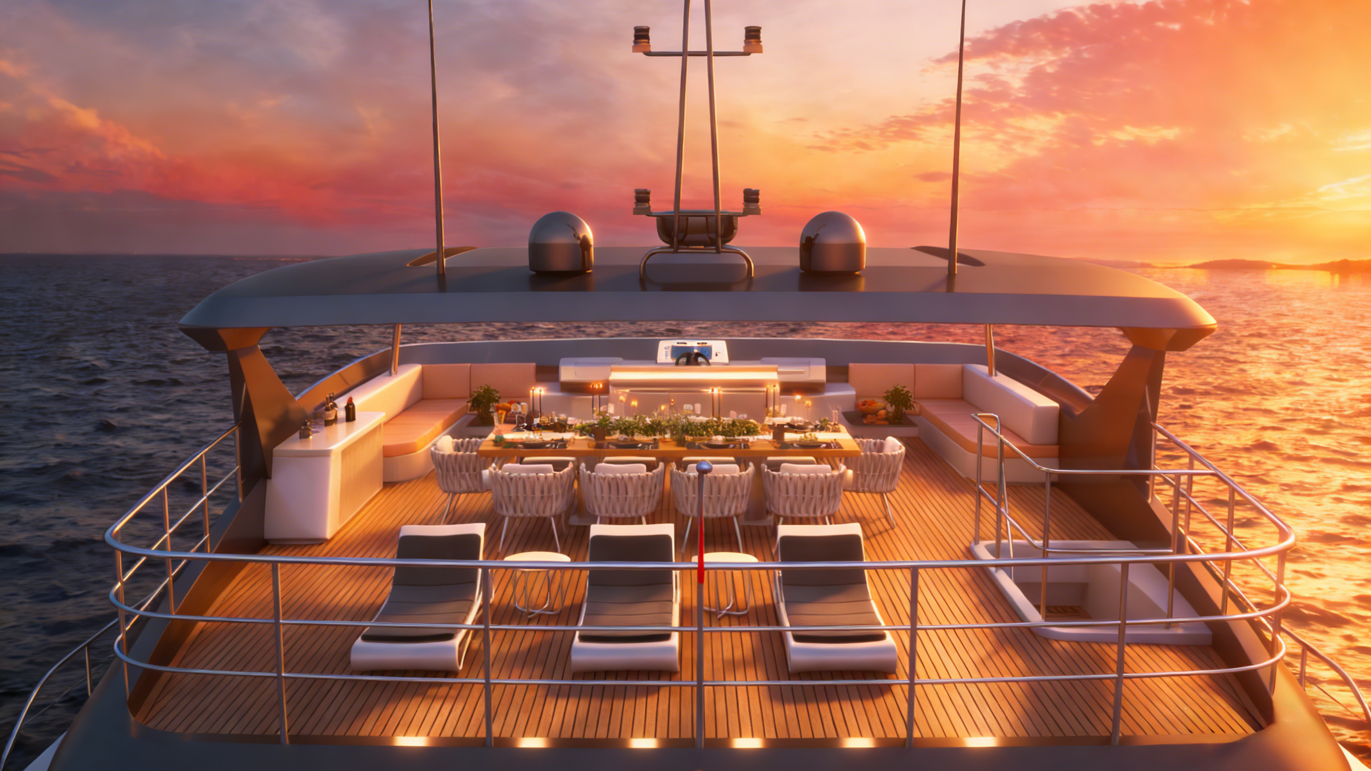 曲面飞桥甲板独具匠心,通过独特的弧线形设计拓宽船侧窗户面积,让自然光线如瀑布般倾泻而入,不仅大幅提升室内采光效果,更赋予船内开阔通透的视觉感受。